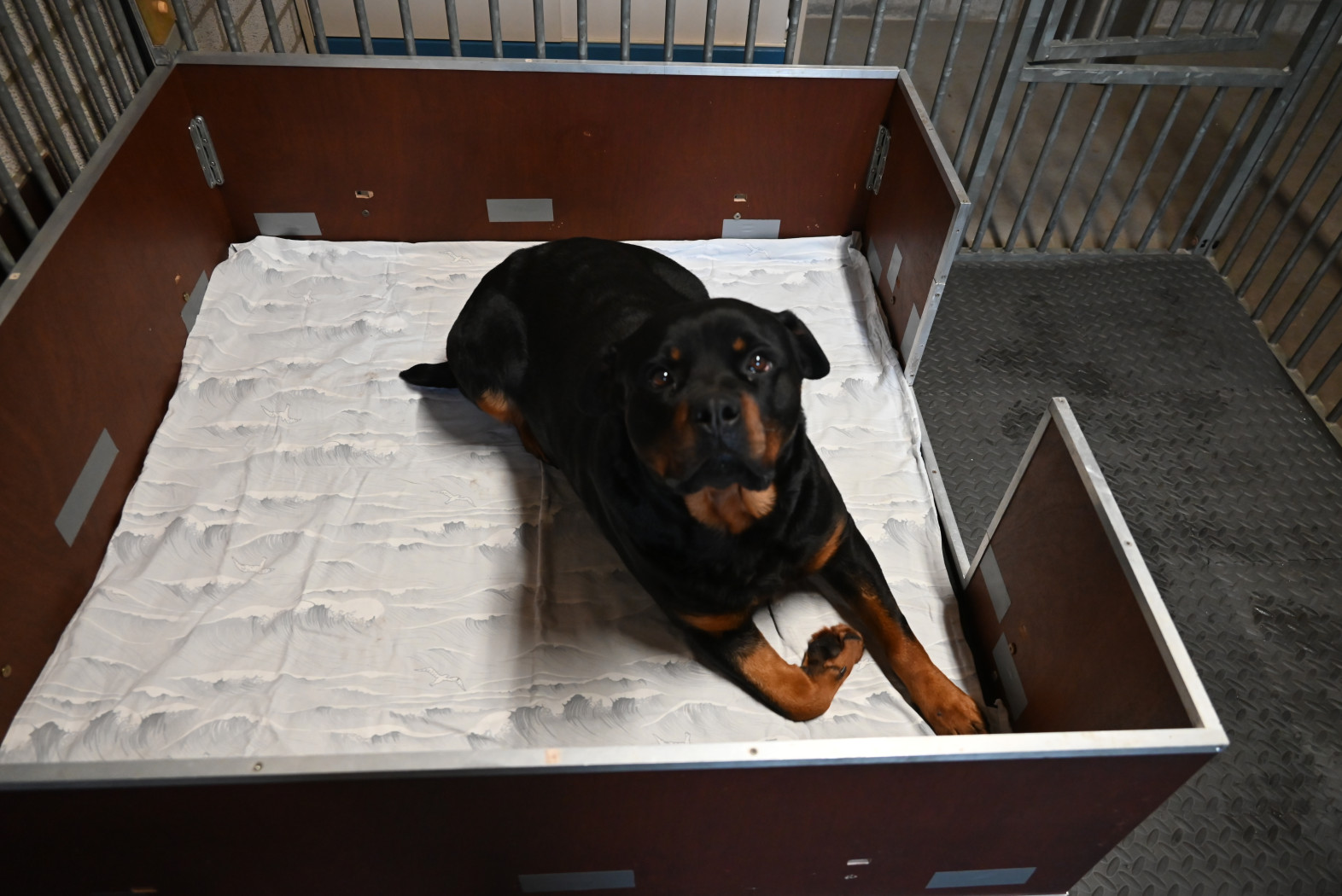 een week van te voren rontgenfoto gemaakt en tellen maar , Ceto keurt alvast haar onderkomen voor de komende tijd.