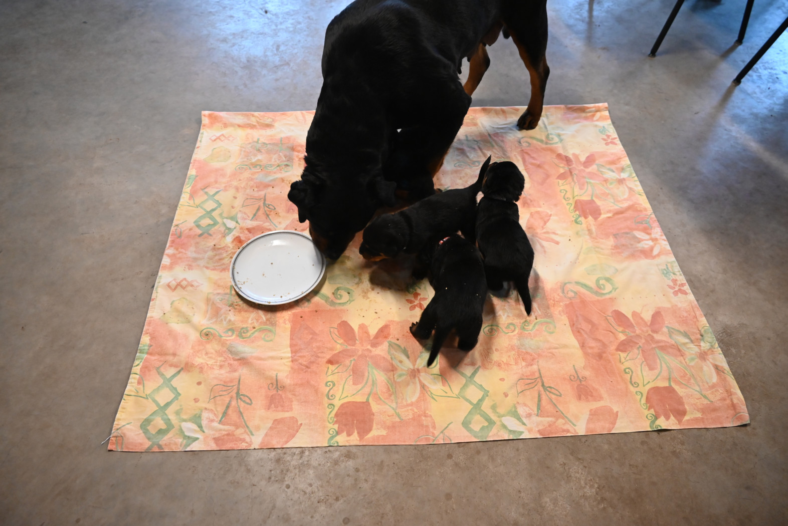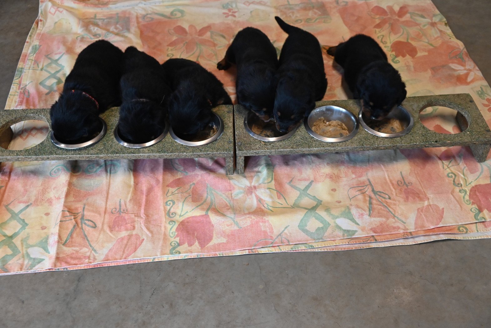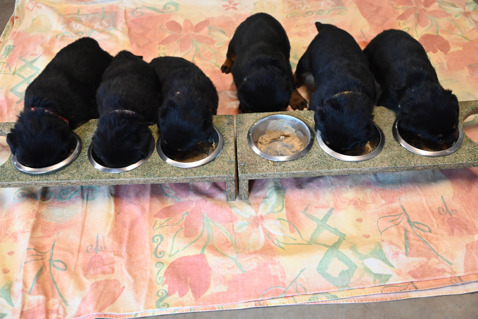 25 februari alweer drie weken en voor het eerste brokjespap. Waarna later moeders de restjes mocht hebben.